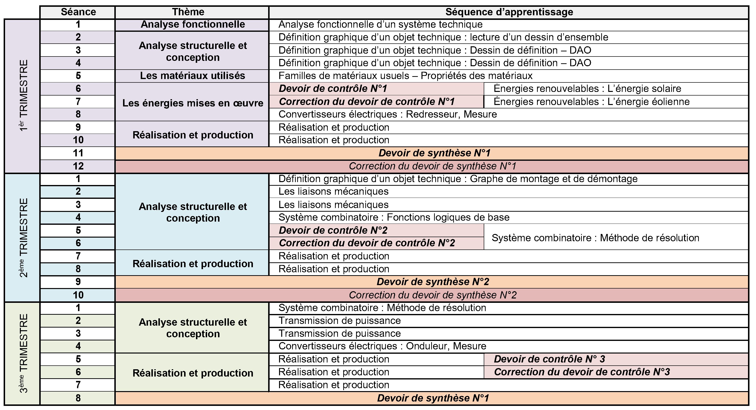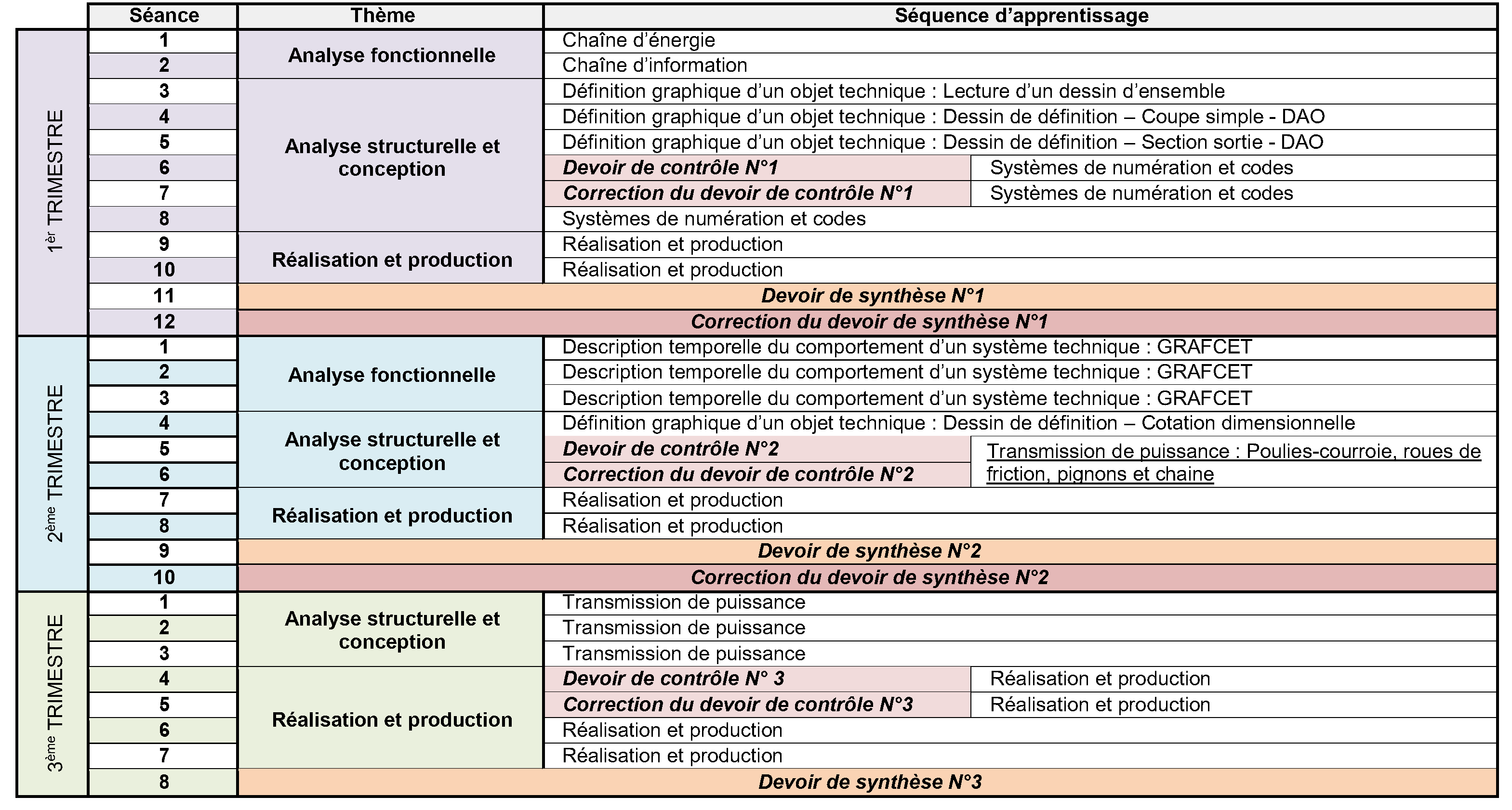RÉPARTITION PÉDAGOGIQUE DU PROGRAMME SPECIAL DE TECHNOLOGIE